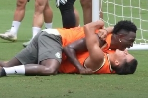 体育资讯6月30日讯 皇马正备战7月2日世俱杯1/8决赛对尤文的比赛。 皇马后卫巴斯克斯更新社媒,晒出队内训练片段。巴斯克斯接魔笛助攻铲射破门,随即维尼修斯第一个上前将其“压在地上”庆祝,随后他也被其他队友包围。