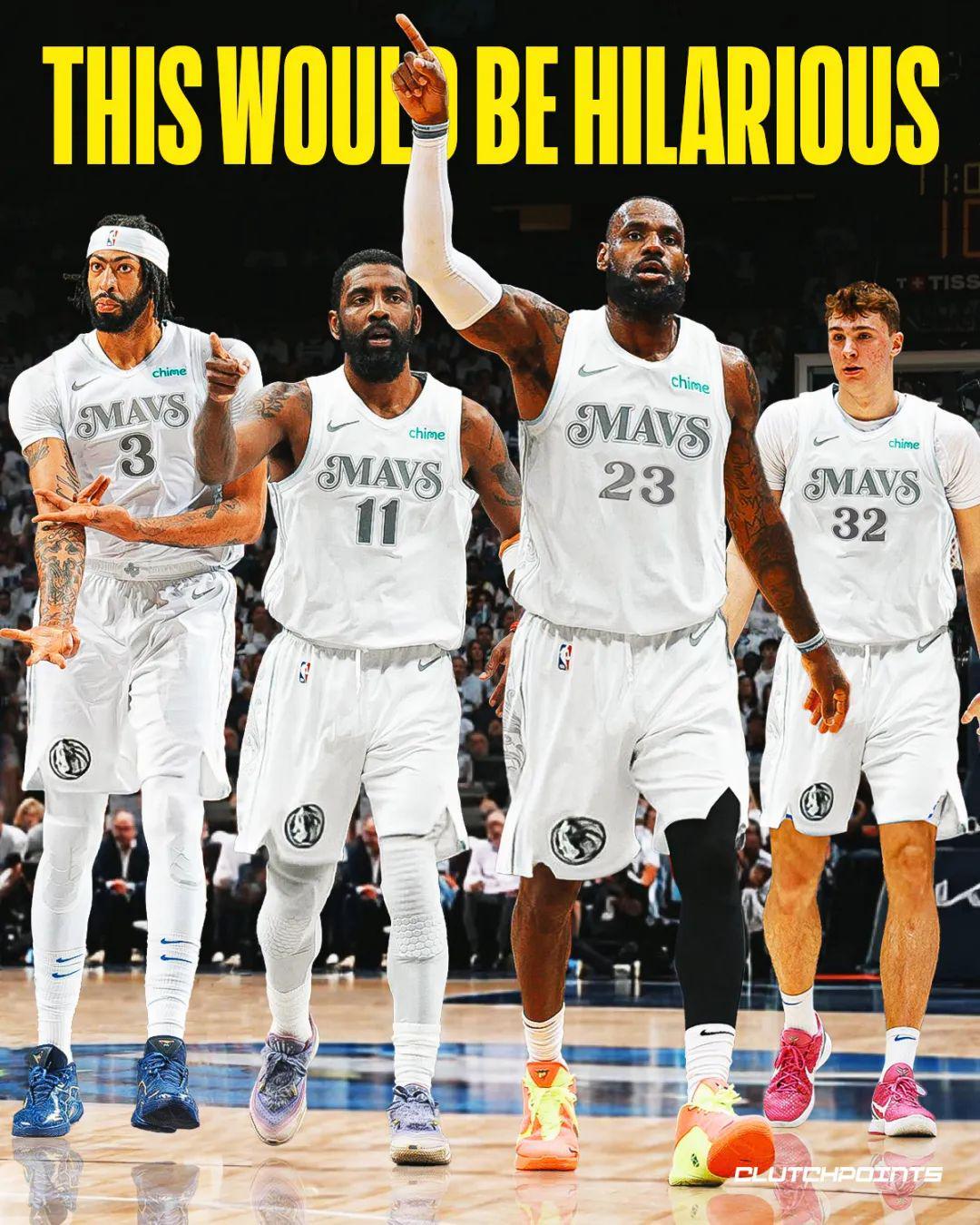 ——独行侠将组成一支超级球队,拥有詹姆斯、欧文、浓眉、莱夫利、弗拉格,可以跻身争冠行列